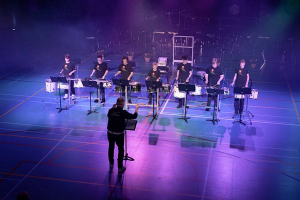 De jeugdpercussie in actie tijdens het voorjaarsconcert 2026.